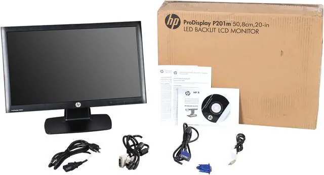 Keep up the good work with solid performance, a stylish design with built-in speakers, and environmental features all at an attractive price point with the HP ProDisplay P201m 20-inch LED Backlit Monitor. Efficiently grow and maintain your business with proven HP quality and reliability, stable lifecycles, HP accessory compatibility, and energy savings. Do more throughout the day and help save more throughout the quarter with a monitor that goes the distance.