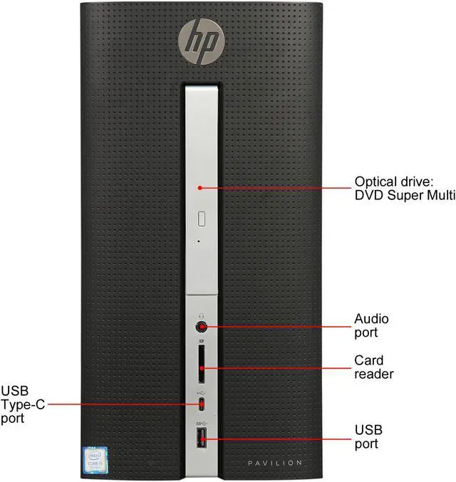 HP Desktop Computer Pavilion 570-p057cb Intel Core i5 7th Gen 7400 (3.00 GHz) 8 GB DDR4 16 GB Optane Memory 2 TB HDD Intel HD Graphics 630 Windows 10 Home 64-Bit