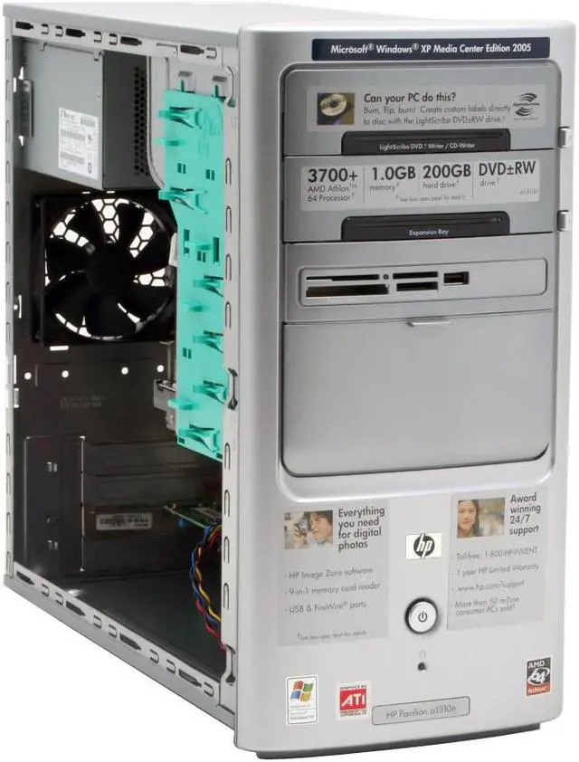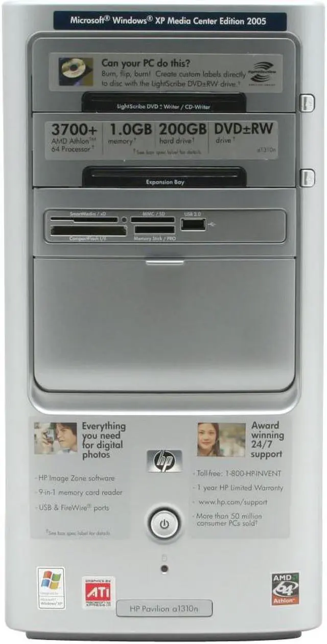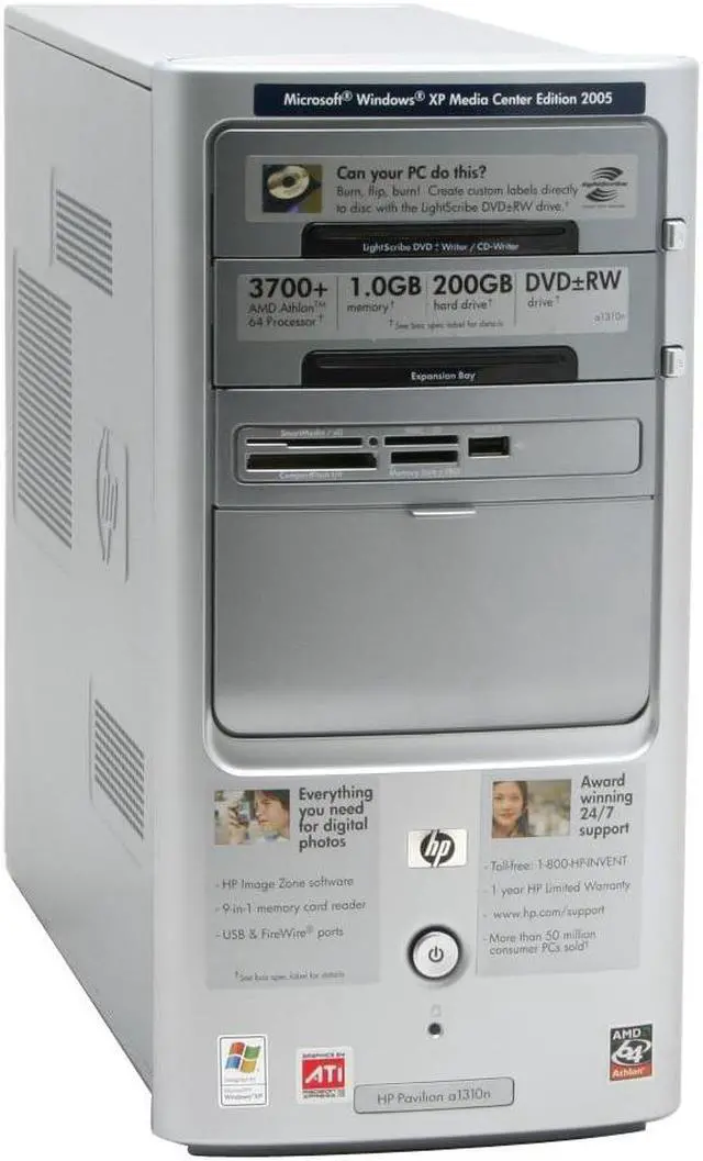 | Software Included | Microsoft Windows XP Media Center Edition 2005 with Update Rollup 2 Microsoft Service Pack 2 WinDVD 5 Player Basic (with optional 7.1 upgrade) Sonic DigitalMedia Plus 7.04 Sonic MyDVD Plus 6.2 Sonic DigitalMedia Archive 2 WinDVD 5 Player Basic (with optional 7.1 upgrade) Sonic DigitalMedia Plus 7.04 Sonic MyDVD Plus 6.2 Sonic DigitalMedia Archive 2 Microsoft Encarta Encyclopedia 2005 Standard (fc) MSN Encarta Standard (online) (nfc) Real Player My HP Games (nfc) HP Games for media center (nfc) HP Image Zone 5 Image Zone for media center Muvee autoProducer 4.5 Muvee autoProducer unplugged 1.2 Adobe Reader Microsoft Works 8.0 Microsoft Office 2003 Student Teacher Edition Trial Microsoft Money 2005 (nfc) Quicken New User Edition 2006 (nfc) Norton Internet Security 2005 AntiSpyware Edition (60-day security update subscription) Norton Security Center PC-Doctor 5 for Windows Microsoft system restore HP Recovery Software Suite Software Repair Wizard HP Software Update Updates from HP Help & Support Center Desktop Web-based registration Online documentation Microsoft Internet Explorer Netscape browser (nfc) Google toolbar ISP offers Snapfish Rhapsody TurboTax Online Adobe Store Symantec Security Check NetSmartz IntelliMover Data Transfer Backup Online Backup SwapDrive Online File Sharing |