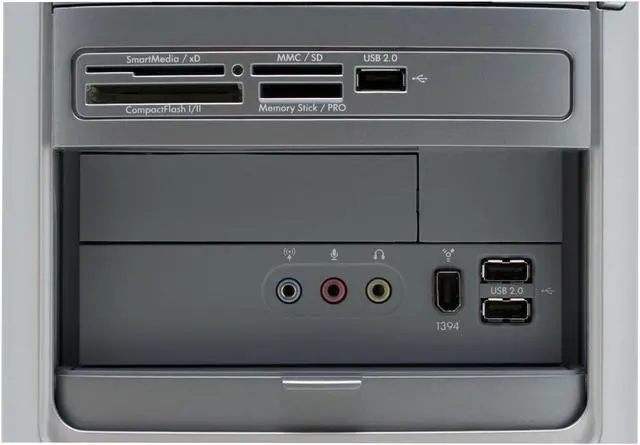 Front panel 9-in-1 memory card reader – supports Smart Media, xD, MultiMedia Card, Secure Digital (SD), Compact Flash I, Compact Flash II, Micro Drive, Memory Stick and Memory Stick Pro