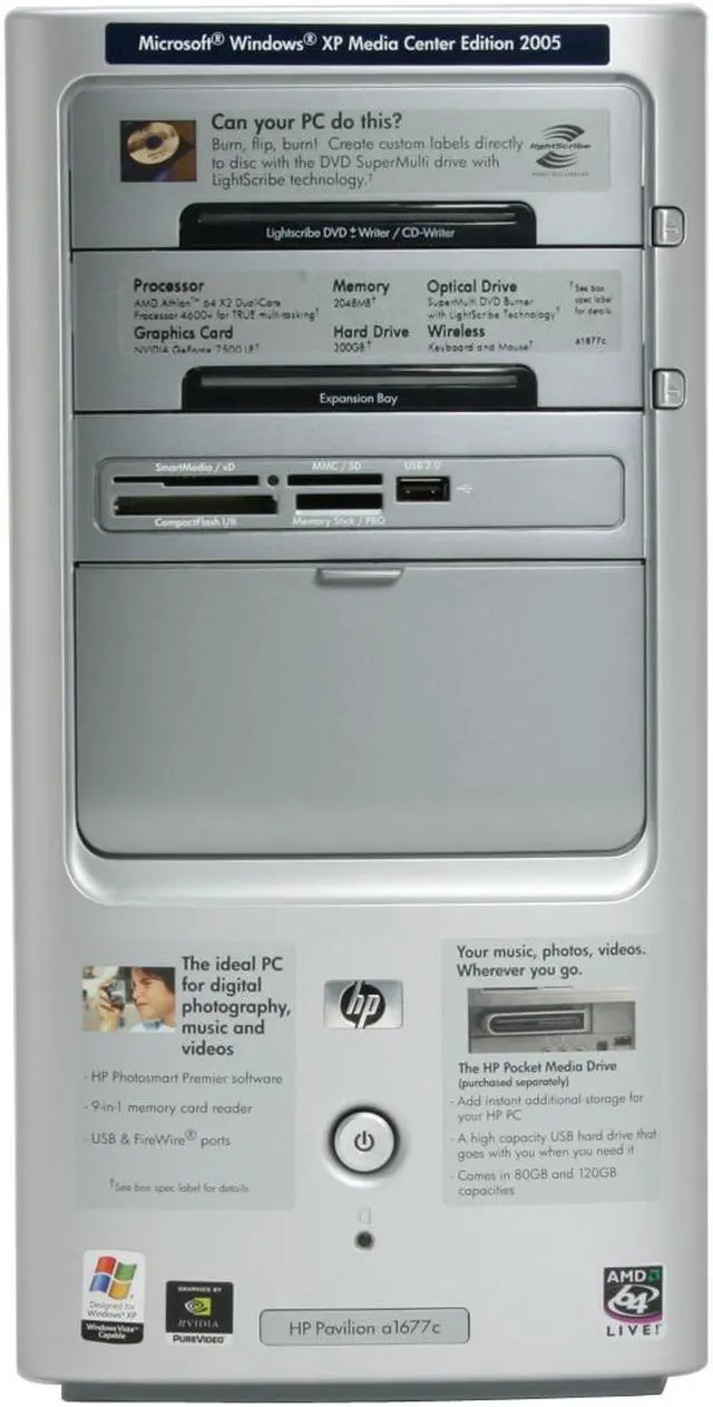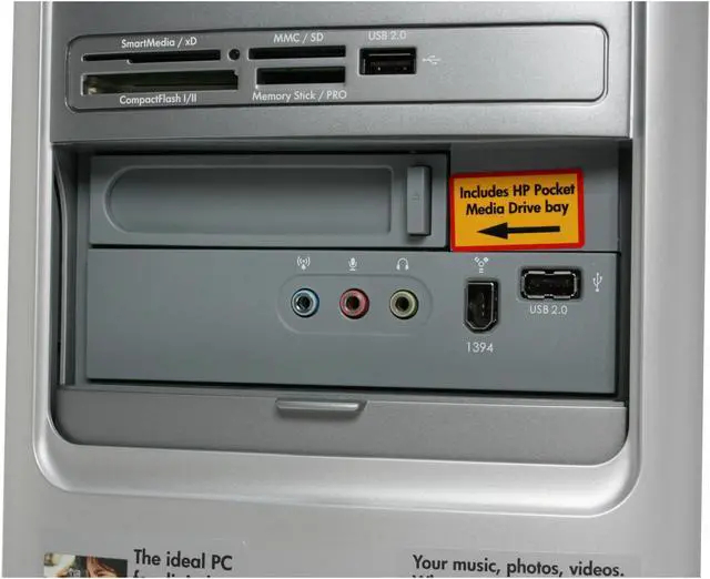 | Software Included | CyberLink DVD Play Sonic DigitalMedia Plus 7.04 Sonic MyDVD Plus 6.2 Roxio DigitalMedia Archive 2 Education & Reference: MSN Encarta Standard (online) (nfc) Microsoft Encarta Encyclopedia 2006 Standard (fc) Entertainment, Music & Games: Rhapsody Real Player My HP Games (nfc) HP Games for media center (nfc) Imaging, Photography, Video & Film: HP Photosmart Premier 6.5 HP Photosmart for media center 2.1 Muvee autoProducer 5 Muvee autoProducer unPlugged 2 Productivity & Finance: Adobe Reader Microsoft Works 8.0 Microsoft Office 2003 Student Teacher Edition Trial Microsoft Money 2006 (nfc) Quicken New User Edition 2006 (nfc) Security: Norton Internet Security 2006 (60-day security update subscription) Utility, Maintenance & Performance: PC-Doctor 5 for Windows Recovery: Microsoft system restore HP Recovery Software Suite Software Repair Wizard Service & Support: HP Software Update Updates from HP Help & Support Center Online documentation Internet Solutions: Microsoft Internet Explorer Netscape browser (nfc) Yahoo toolbar ISP offers HP Partner offers: Snapfish Vonage VOIP AOL Music Now (nfc) Adobe Store Weatherbug Symantec Security Check NetSmartz @Backup Online Backup SwapDrive Online File Sharing |