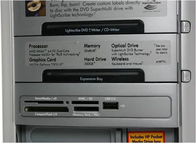 | Card Reader | Front panel 9-in-1 memory card reader – [supports Smart Media, xD, MultiMedia Card, Secure Digital (SD), Compact Flash I, Compact Flash II, Microdrive, Memory Stick and Memory Stick Pro] |