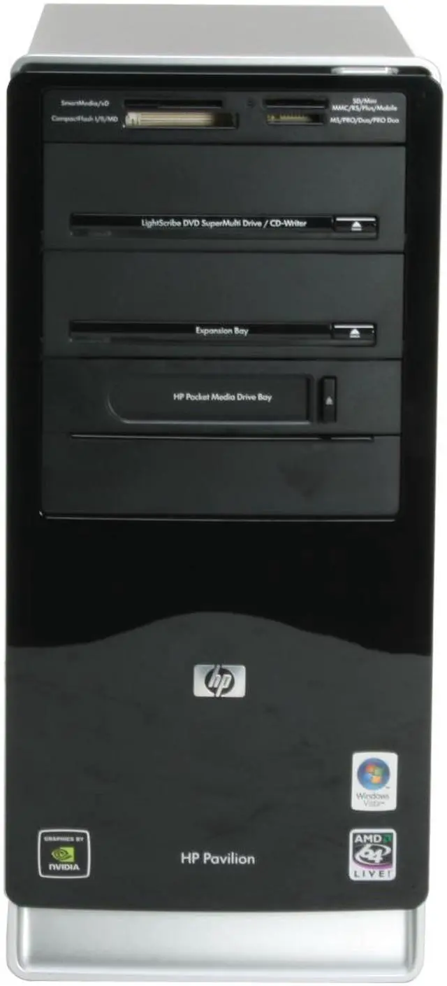 | Software Included | Photo and Video: HP Photosmart Essential to manage your digital photos Roxio Creator – featuring LightScribe Technology: Edit, burn and archive data to DVDs and CDs muvee autoProducer: Automatically create professional looking home videos and burn to DVD Roxio MyDVD Basic: Make movies and slideshows and burn to DVD or CD Entertainment: RealPlayer: Find, play and organize digital programming - sports, entertainment, news and more Productivity: Microsoft Works 8: Includes a word processor, spreadsheet, database and calendar Microsoft Office Home and Student 2007 Trial: 60-day trial version Adobe Reader 7.0: Read and print PDF files HP Total Care Advisor: Customizable desktop tool provides support, system health and shopping information PC Security: Norton Internet Security 2007: Protect your PC out of the box (60 days of complimentary live updates) Online Services: Easy sign-up to major dial-up and broadband Internet Service Providers: - AOL Basic Dial-Up (offer included) - AOL Dial-Up Advantage (offer included) - AOL High Speed (offer included) - MSN dial-up (offer included) - NetZero Dial-Up (offer included) - NetZero Accelerated Dial-Up (offer included) - EarthLink dial-up (offer included) - EarthLink High Speed (offer included) - High Speed Internet Services Comparison Shopping |