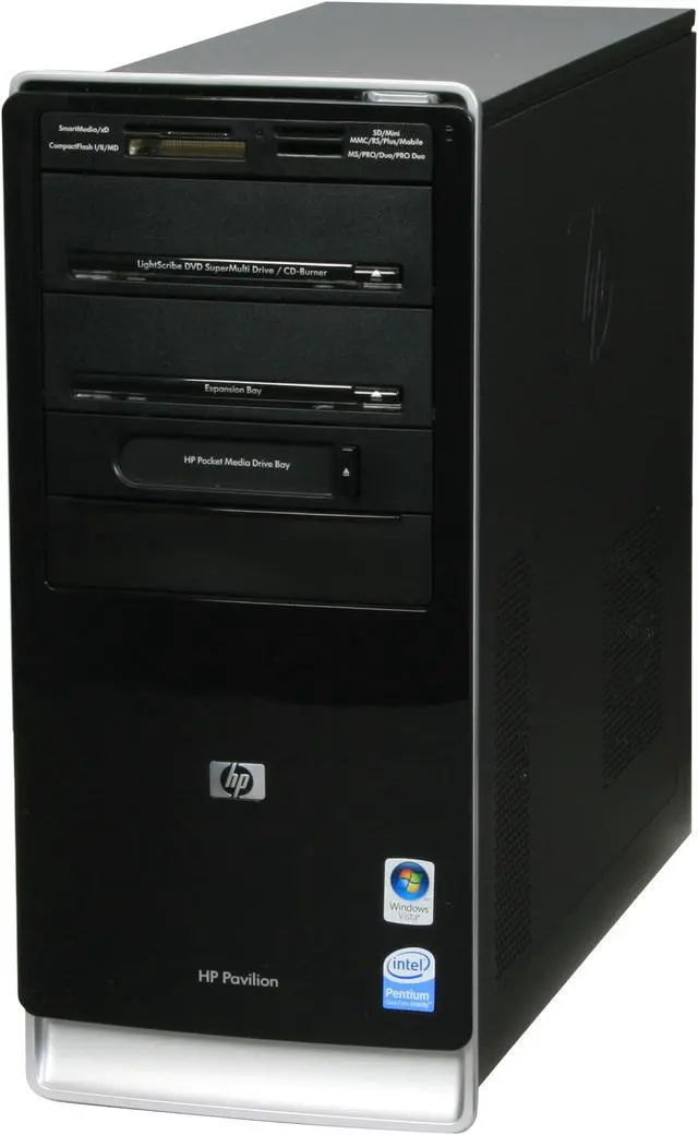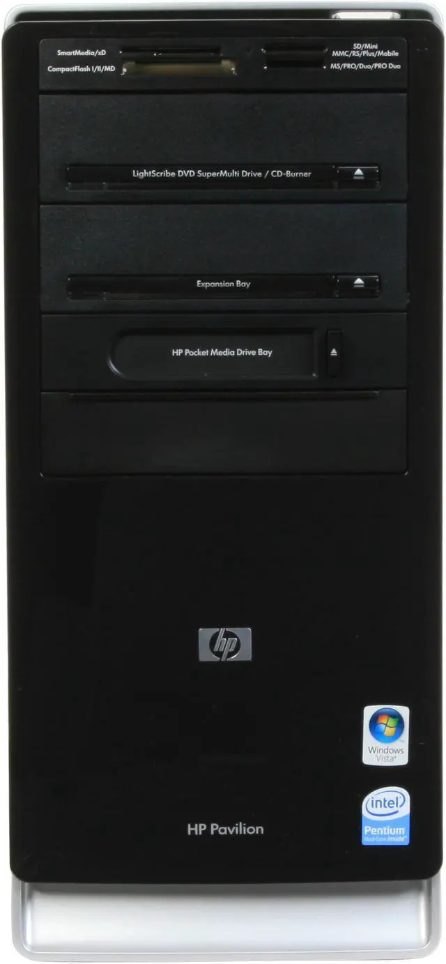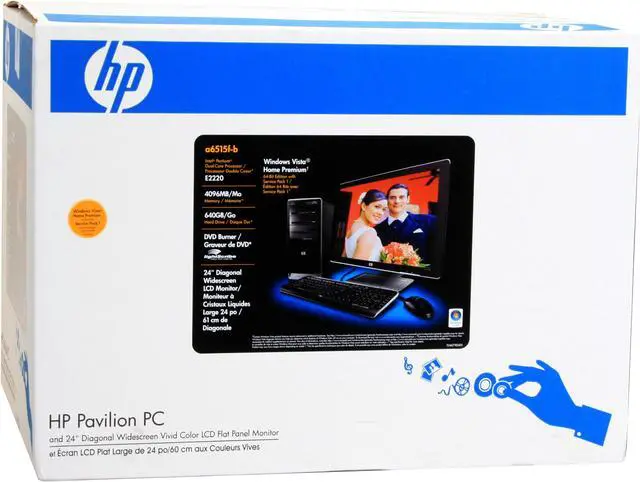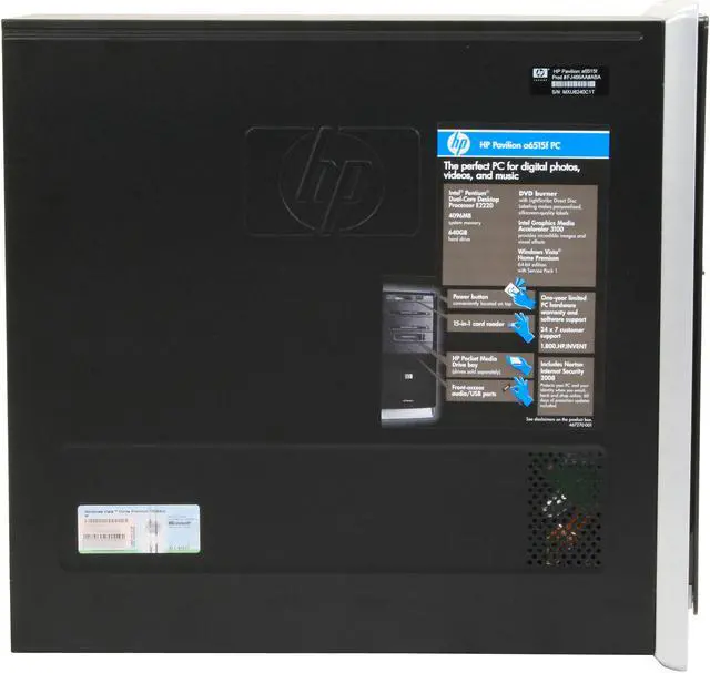 Ready for work or play right out of the box! HP’s Pavilion a6515fb has enough horsepower to help you do more and do it fast. The 2.4 Ghz Intel Pentium dual-core processor gives blazing performance with 4 GB of memory to fully exploit the installed, 64-bit version of Windows Vista Home Premium. The front-mounted 15-in-1 memory card reader lets you easily transfer and share files between your camera, music player and other devices and the spacious 640GB hard drive has plenty of space for you to record the important parts of your life.