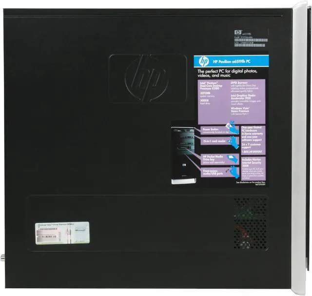| Software Included | Photo and Video muvee autoProducer Basic: Automatically create professional looking home videos and burn to DVD Entertainment Cyberlink DVD Suite Deluxe: Automatically fix and edit videos and create CDs and DVDs. Edit, burn and archive data to discs. Productivity Microsoft Works 9: Includes a word processor, spreadsheet, database and calendar Microsoft Office Home and Student Edition 2007 Trial: 60-day trial version Adobe Reader 8: Read and print PDF file HP Total Care Advisor: Customizable desktop tool provides support, system health and shopping information PC Security Norton Internet Security 2008: Protect your PC out of the box (60 days of complimentary live updates) Online Services Easy sign-up to major dial-up and broadband Internet Service Providers: - MSN dial-up (offer included) - NetZero Dial-Up (offer included) - NetZero Accelerated Dial-Up (offer included) - Juno Turbo Dial-Up (offer included) - High Speed Internet Services Comparison Shopping |