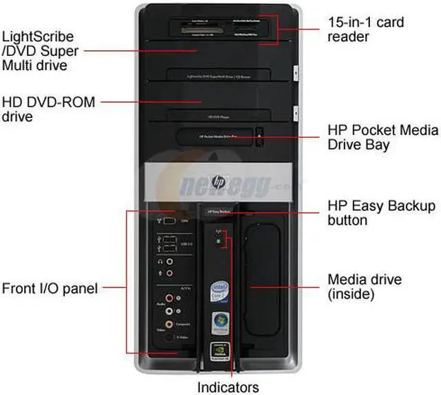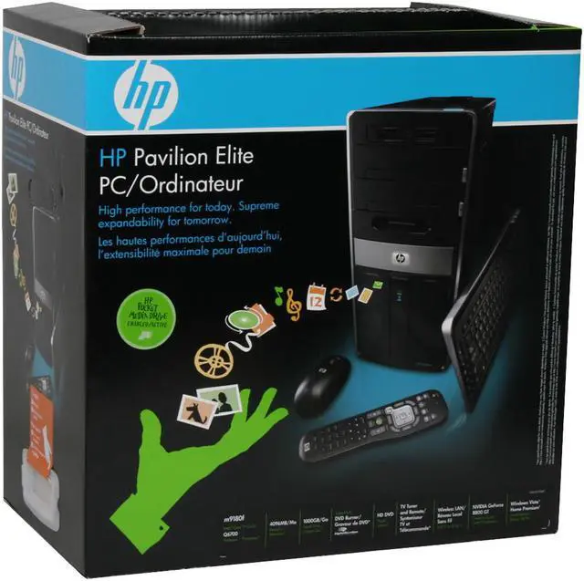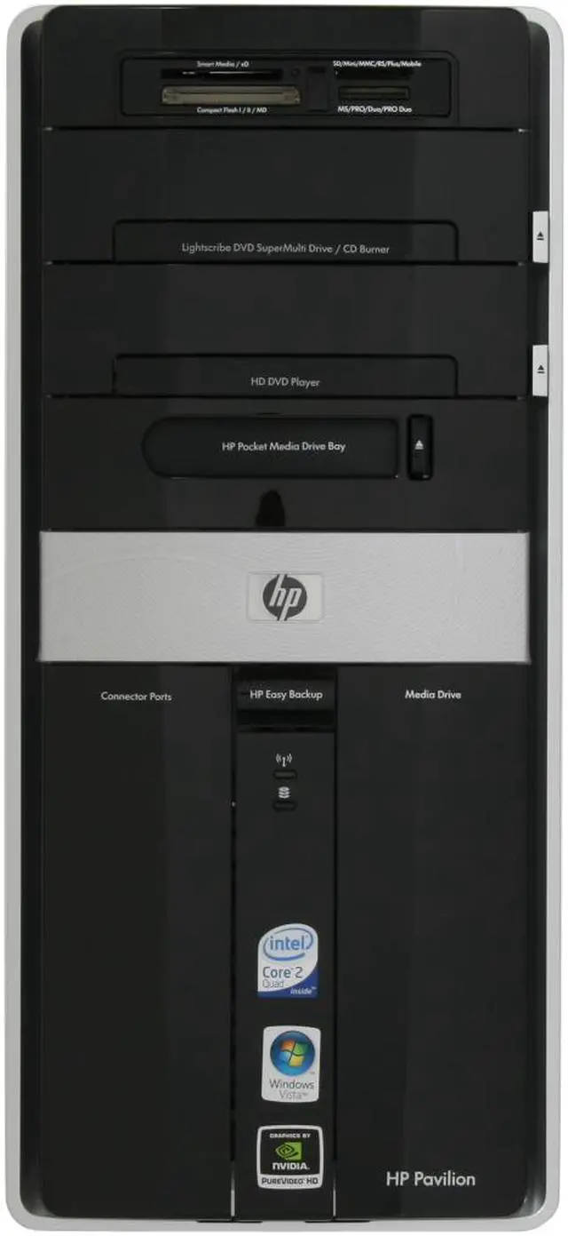 | Special Features | Personal Video Recorder: NTSC TV tuner, over-the-air ATSC high-definition television tuner, and FM tuner Remote Control HP Media Center remote control with IR (infrared) receiver HP Pocket Media Drive bay HP Personal Media Drive bay |