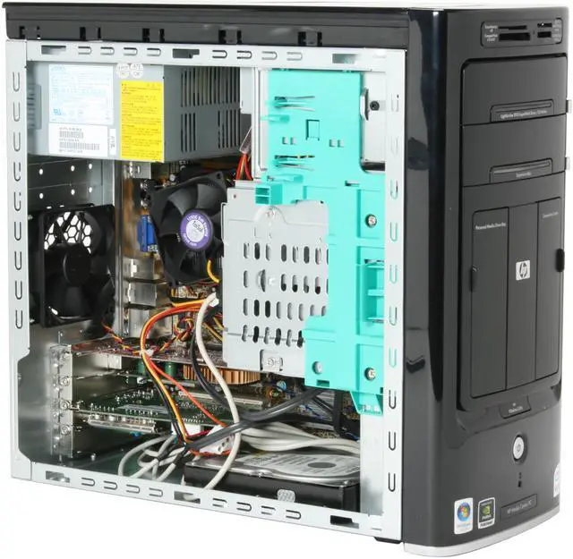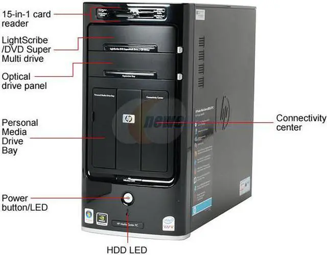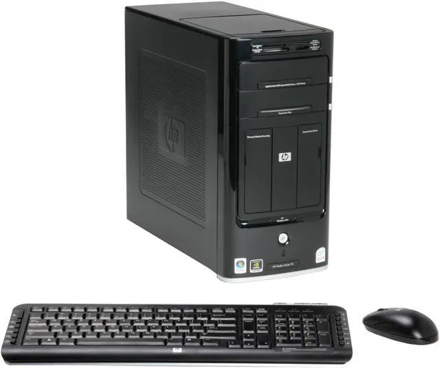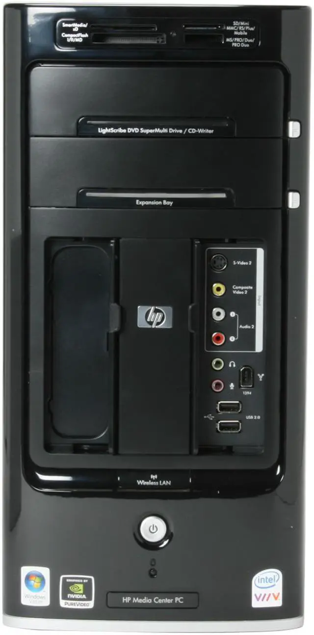 | Media Slots | NTSC TV tuner, over-the-air ATSC high-definition television tuner, and FM tuner (antenna included) HP Media Center remote control with IR (infrared) receiver (included) |
