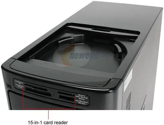 | Card Reader | Front panel 15-in-1 memory card reader (supports Smart Media, xD, MultiMedia Card (MMC), Reduced Size-MMC (RS-MMC), MMCplus, MMCmobile, Secure Digital (SD), miniSD, Compact Flash I, Compact Flash II, Microdrive, Memory Stick (MS), MS PRO, MS Duo, MS PRO Duo |