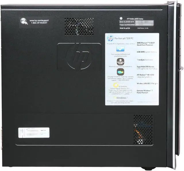 HP Desktop PC Pavilion p6720f (BV532AA#ABA) AMD Phenom II X4 840T 6GB DDR3 1TB HDD ATI Radeon HD 4200 Windows 7 Home Premium 64-bit