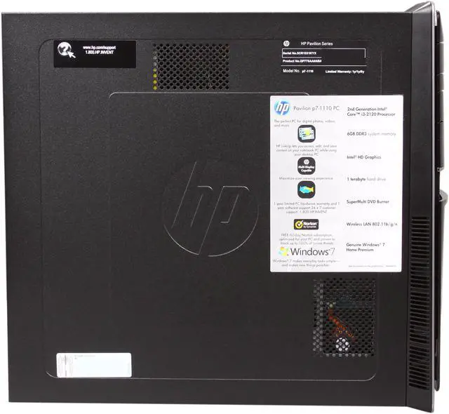 HP Desktop PC Pavilion p7-1110 (QP775AA#ABA) Intel Core i3-2120 6GB DDR3 1TB HDD Intel HD Graphics Windows 7 Home Premium 64-bit