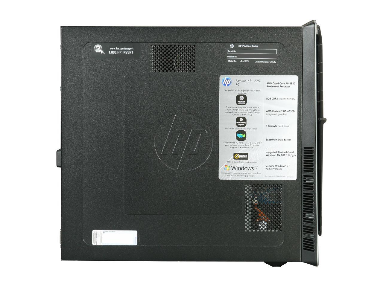 HP Desktop PC Pavilion p7-1225 (QW839AA#ABA) A8-Series APU A8-3820 (2.50 GHz) 8 GB DDR3 1 TB HDD AMD Radeon HD 6550D Windows 7 Home Premium 64-Bit