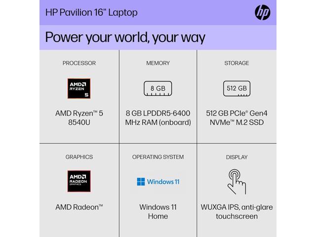 HP Pavilion x360 16.0" Touchscreen Laptop Ryzen 5 8540U AMD Radeon 740M 8GB RAM 512GB SSD Windows 11 Home 16-ag0010nr