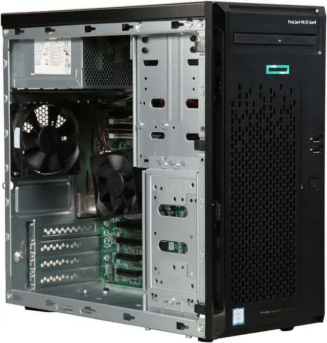 With the server performance at a desktop PC price, the HPE ProLiant ML10 Gen9 is the ideal first server for your home office or small business. This 4U/1P tower model is powered by the latest Intel Xeon E3-1200 v5, delivering great compute performance you need for workloads such as collaboration, business apps, file and print. You'll also like its quiet, compact design that's easy to deploy, and the protect features that reduce the risk of data loss. And thanks to the intelligent, easy-to-use server management software, you can focus on your business, not managing your server environment.