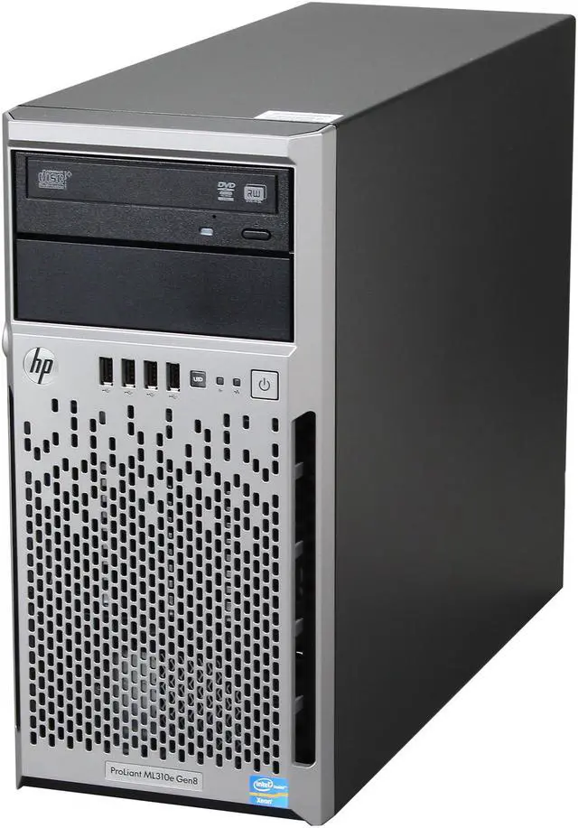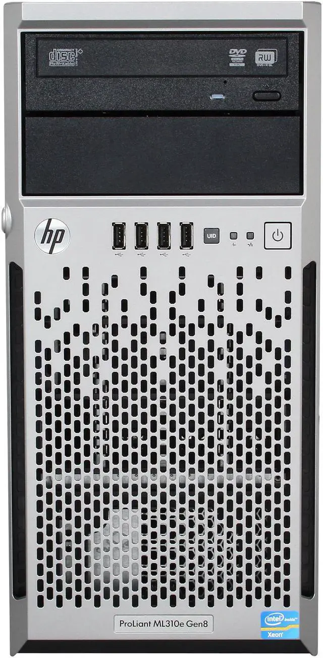 • neweggBuilt for EfficiencyThe HP ProLiant ML310e Gen8 Server series supports high efficiency HP Platinum Plus common-slot power supplies with optional hot plug, redundant power supply. First 3D array of temperature sensors (part of HP Thermal Discovery Services) helps precisely control server fans to direct cooling, reducing unnecessary fan power. It supports 1600MHz DDR3 memory, with up to four DIMMs for maximizing performance. ENERGY STAR compliant configurations illustrate the HP commitment to helping customers conserve energy and save money.