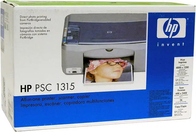 HP PSC 1315 Q5765A 17 ppm Black Print Speed 4800 x 1200 dpi Color Print Quality USB InkJet MFC / All-In-One Color Printer