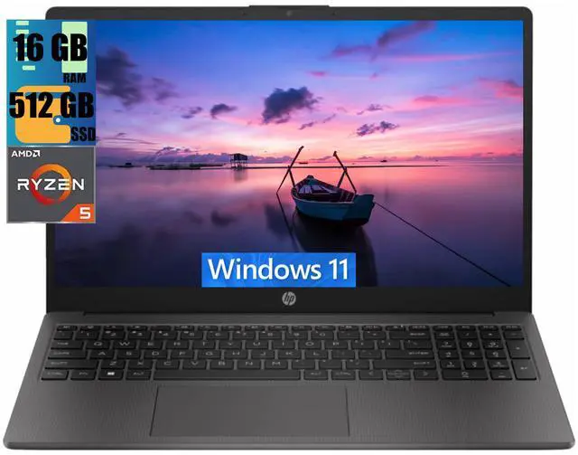 HP 255 G10 15 Business Laptop, 15.6" FHD Display, AMD Ryzen 5 7530U 6 Cores Processor, AMD Radeon Graphics, 16GB DDR4 512GB PCIe SSD, Webcam, HDMI, Wi-Fi 6, Windows 11