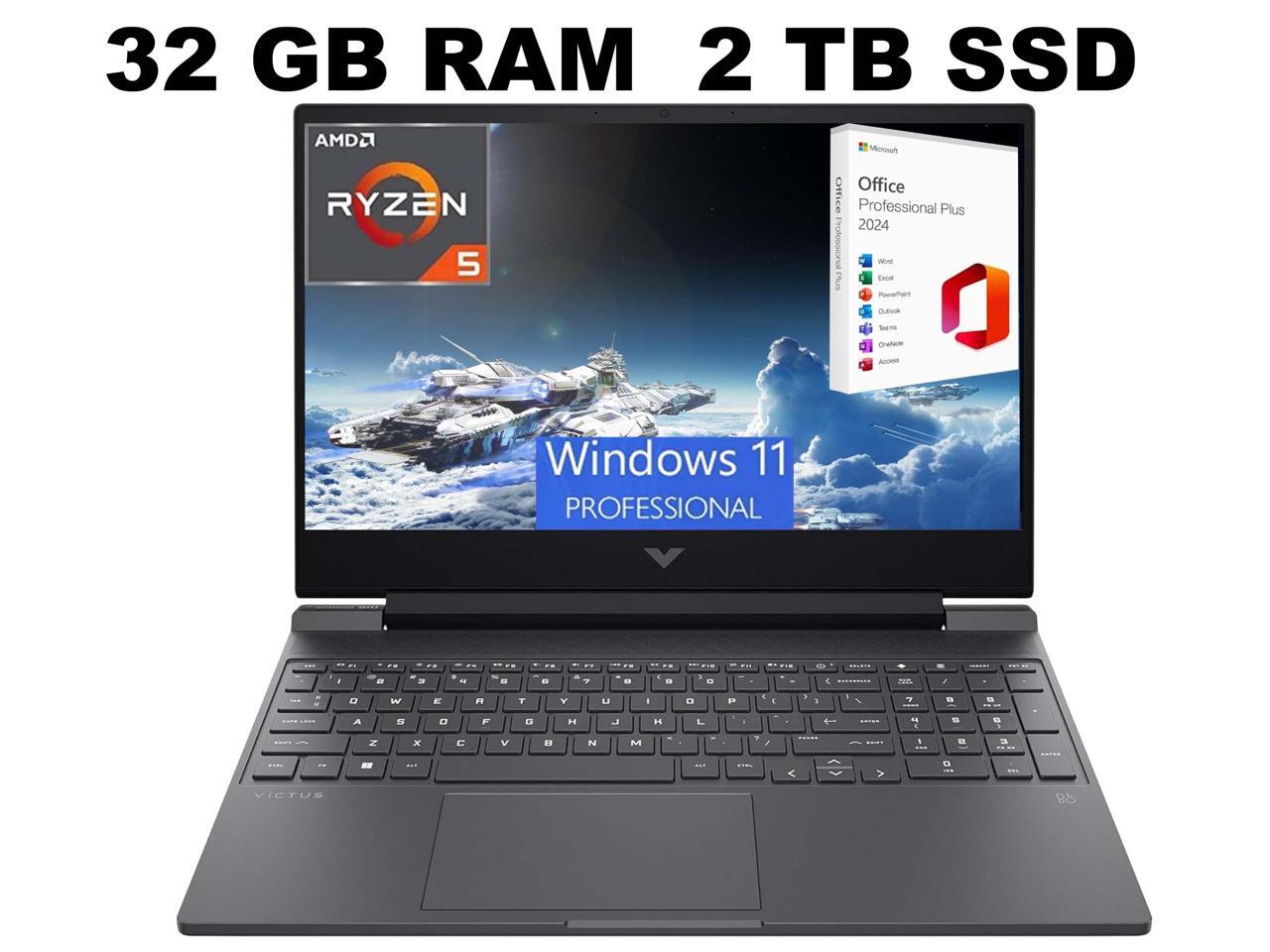 HP Victus 15 Gaming Laptop, 15.6" FHD 144Hz Display, AMD Ryzen 5 7535HS 6 Cores Processor, AMD Radeon RX 6550M Graphics, 32GB DDR5 2TB PCIe SSD, Backlit KB, Windows 11 Pro ,Office 2024 License