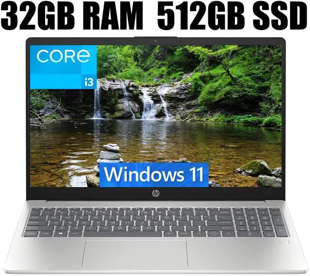 HP 15 Laptop, 15.6" FHD (1920 x 1080) Display, Intel Core i3-N305 8 Cores Processor, Intel UHD Graphics, Wi-Fi 6 and Bluetooth 5.3, Fingerprint, 32GB DDR4 512GB PCIe SSD, Windows 11