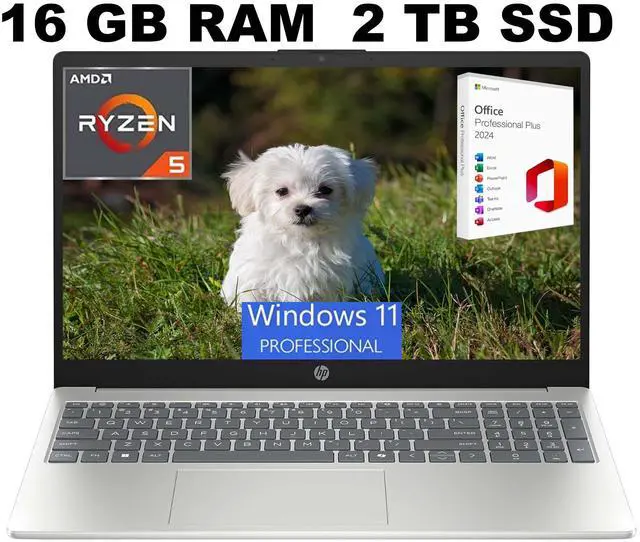 HP 15.6 Laptop, 15.6" FHD (1920 x 1080) Display, AMD Ryzen 5 7520U 4-Core Processor, AMD Radeon Graphics, 16GB DDR4 2TB PCIe SSD, Wi-Fi 6, Bluetooth 5.3, Windows 11 Pro ,Office 2024 License