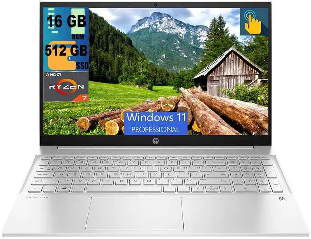 HP Pavilion 15 Laptop, 15.6" FHD Touchscreen, AMD Ryzen 7 5700U(8 Cores, Up to 4.3GHz) Processor, AMD Radeon Graphics, 16GB DDR4 512GB PCIe SSD, Backlit KB, WiFi 6, Windows 11 Pro