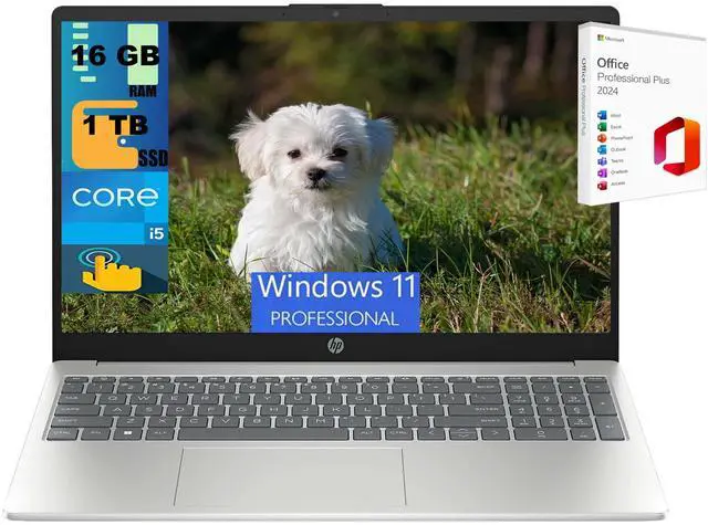 HP 15 Laptop, 15.6" HD Touchscreen, Intel Core i5-1235U 10 Cores Processor, Intel Iris Xe Graphics, 16GB DDR4 1TB PCIe SSD, Webcam, Wi-Fi 6, Windows 11 Pro ,Office 2024 License