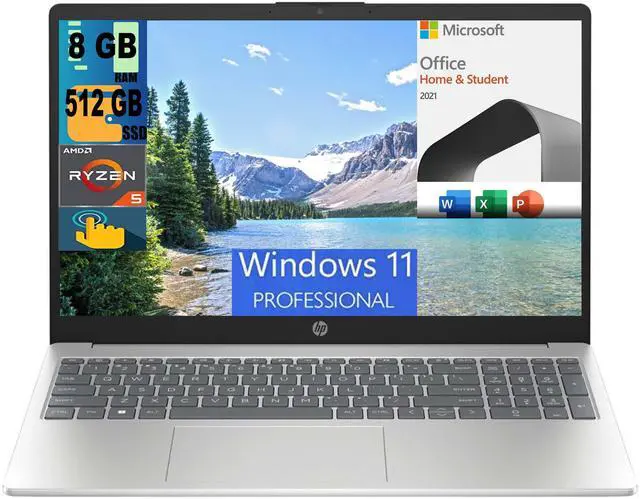 HP 15 Laptop, 15.6" HD (1366 x 768) Touchscreen, AMD Ryzen 5 7520U 4 Cores Processor, AMD Radeon Graphics, 8GB DDR4 512GB PCIe SSD, Bluetooth, Wi-Fi, Windows 11 Pro,Microsoft Office License