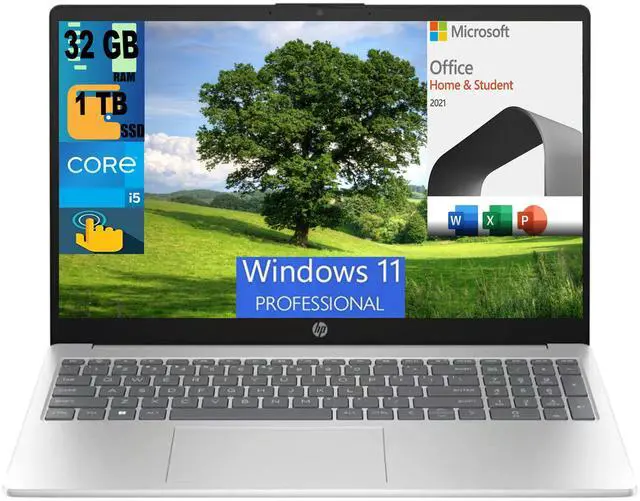 HP 15 Business Laptop, 15.6" HD Touchscreen, Intel Core i5-1235U 10 Cores Processor, Intel Iris Xe Graphics, 32GB DDR4 1TB PCIe SSD, Wi-Fi and Bluetooth, Windows 11 Pro,Microsoft Office License