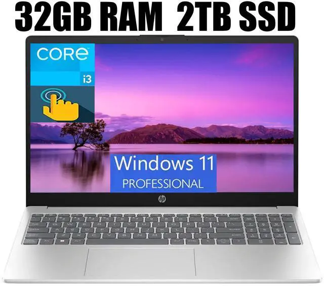 HP 15 Business Laptop, 15.6" HD (1366 x 768) Touchscreen, Intel Core i3-1215U 6 Cores Processor, Intel UHD Graphics, 32GB DDR4 2TB PCIe SSD, Bluetooth, Wi-Fi, Long Battery Life, Windows 11 Pro