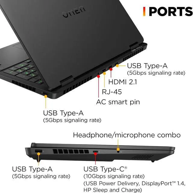 • Ports : 3 x Superspeed USB Type-A, 1 x Superspeed USB Type-C, 1 x HDMI, 1 x RJ-45, 1 x Headphone/Microphone Combo