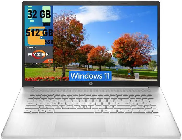 HP 17 Laptop, 17.3" FHD (1920 x 1080) Display, AMD Ryzen 5 5500U 6 Cores Processor, AMD Radeon Graphics, 32GB DDR4 512GB PCIe SSD, Webcam, HDMI, Wi-Fi, Windows 11