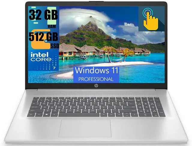 HP 17 Business Laptop, 17.3" HD+ Touchscreen, Intel Core 7 150U 10-Core Processor, Intel Graphics, 32GB DDR4 512GB PCIe SSD, Backlit Keyboard, Wi-Fi 6, Bluetooth 5.3, Windows 11 Pro