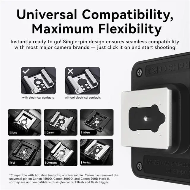 | Compatible with Sony | A7III, A7IV, A7R5, A7RIII, A7RIV, A9, A7RII/V4.0, A7R, A6400, RX10, ZV-1, ZV-E10 |