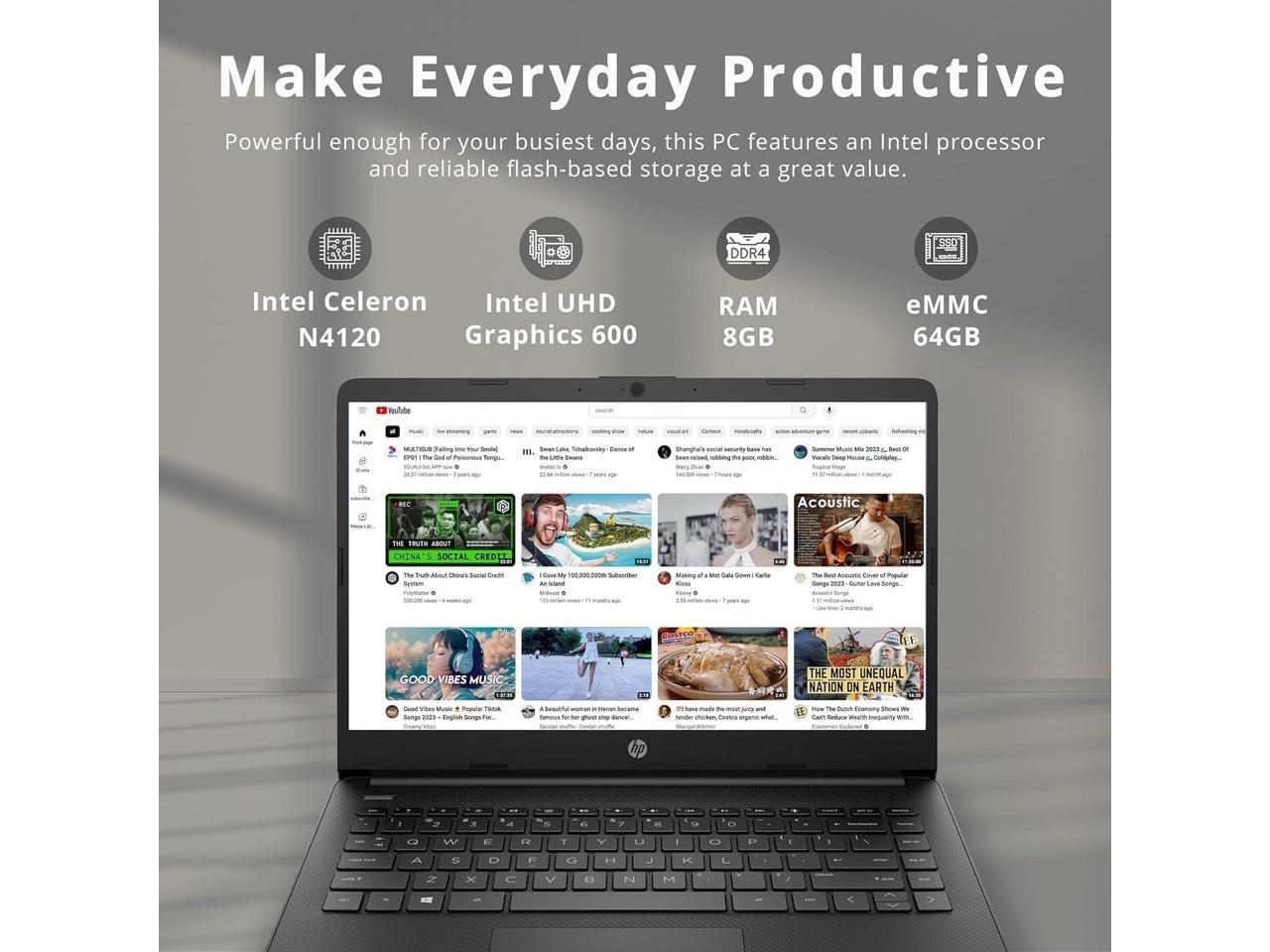 HP Stream 14" HD BrightView Laptop, Intel Celeron N4020 Processor, 4GB RAM, 64GB Storage, Intel HD Graphics, 720p Webcam, 1 Year Office 365, Black, Win 11 S, 32GB Hotface USB Card