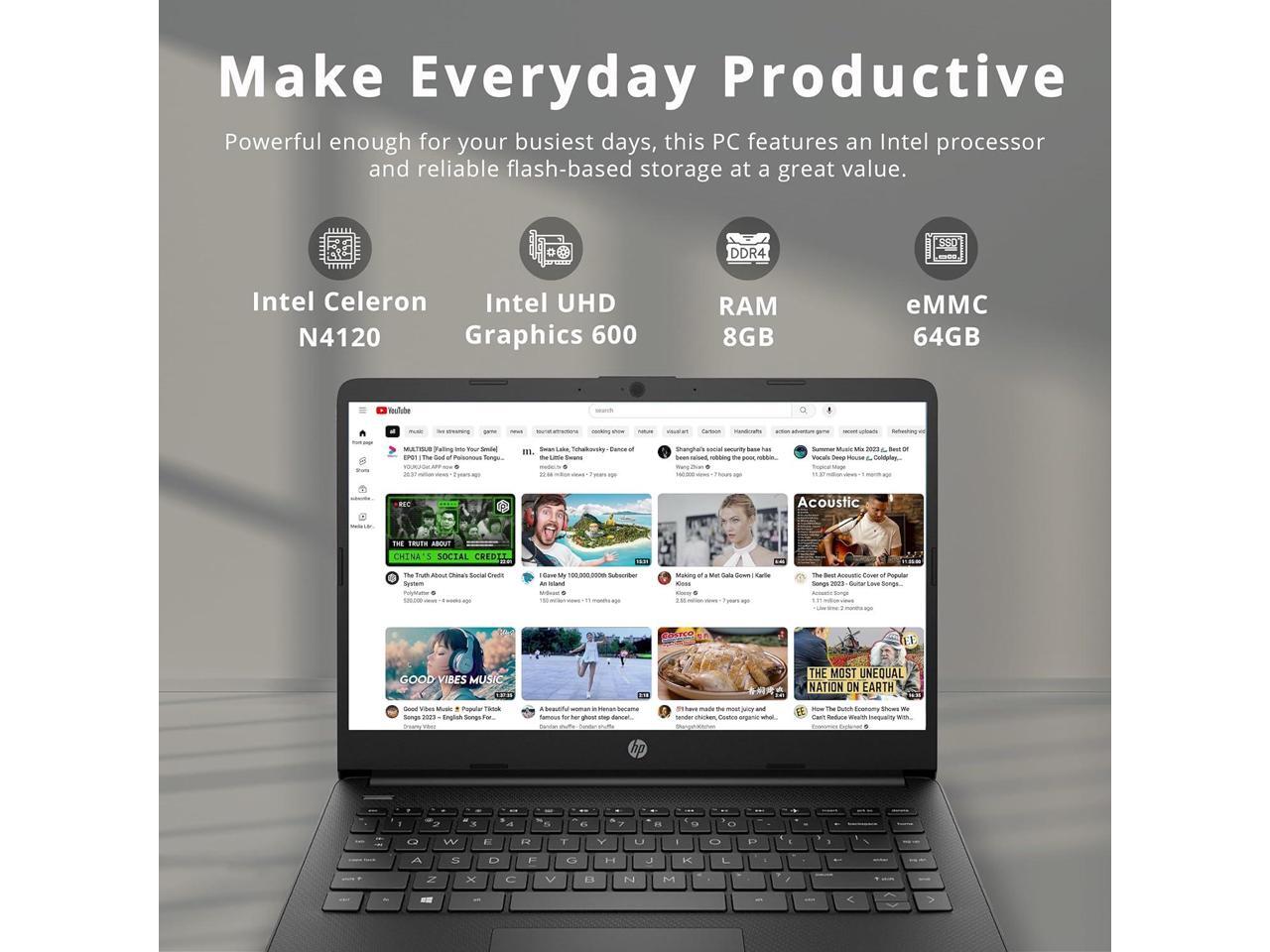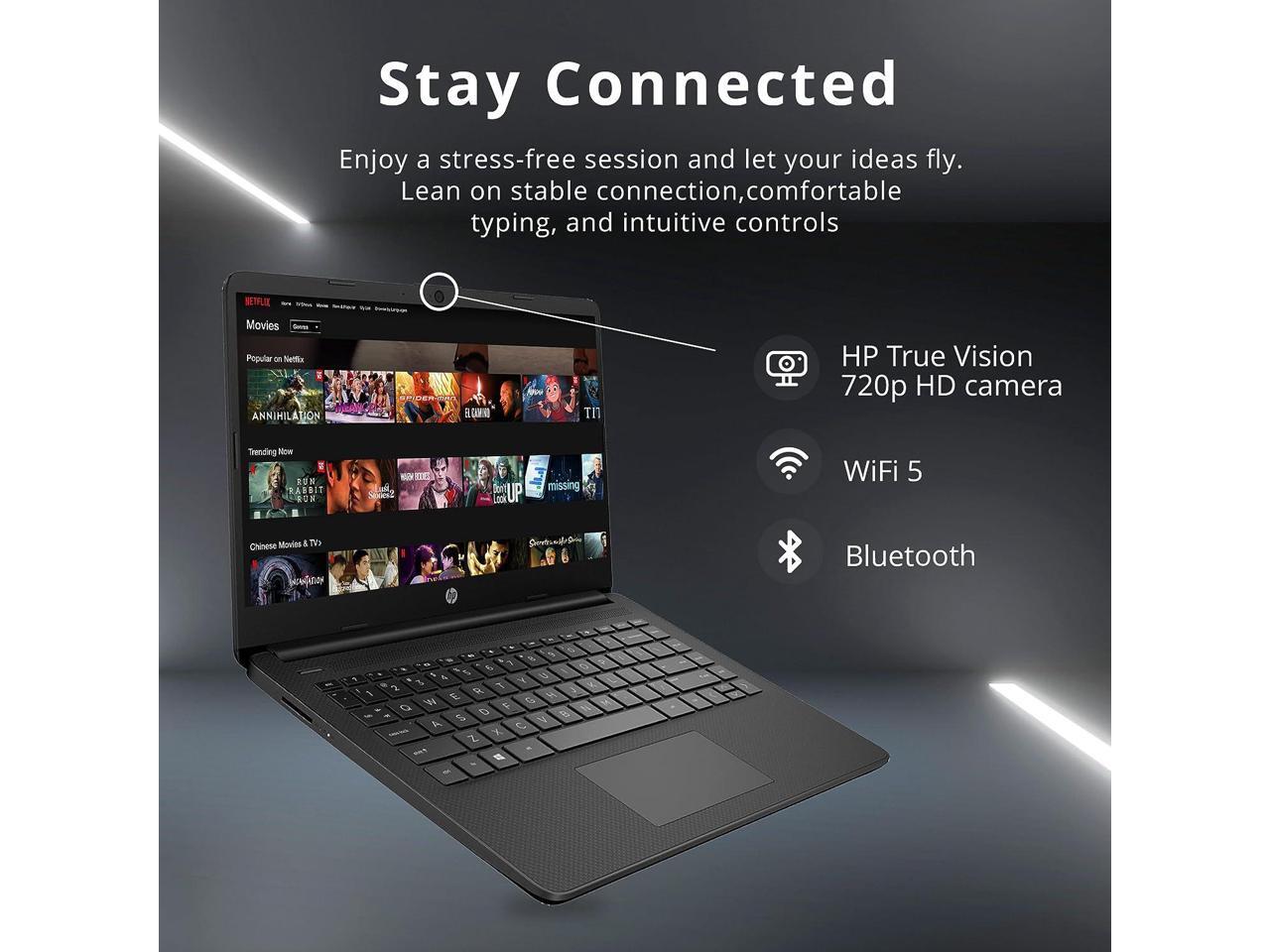 HP Stream 14" HD BrightView Laptop, Intel Celeron N4120, 8GB RAM, 64GB eMMC, Intel UHD Graphics, 720p Webcam, 1 Year Office 365, Black, Win 11 S, 32GB Hotface USB Card