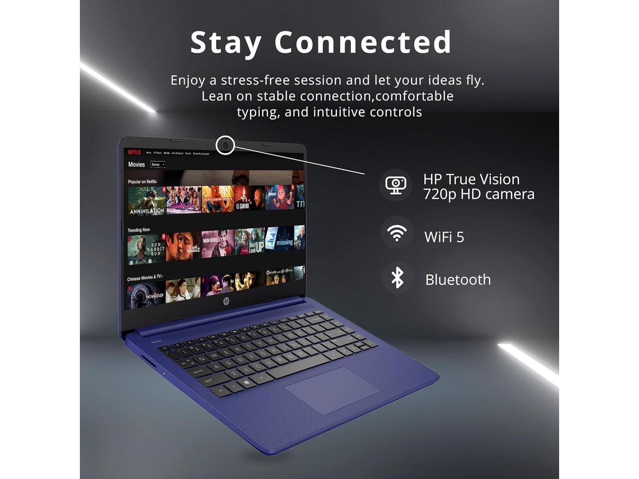 HP Stream 14" HD BrightView Laptop, Intel Celeron N4120, 8GB RAM, 64GB eMMC, Intel UHD Graphics, 720p Webcam, 1 Year Office 365, Blue, Win 11 S, 32GB Hotface USB Card