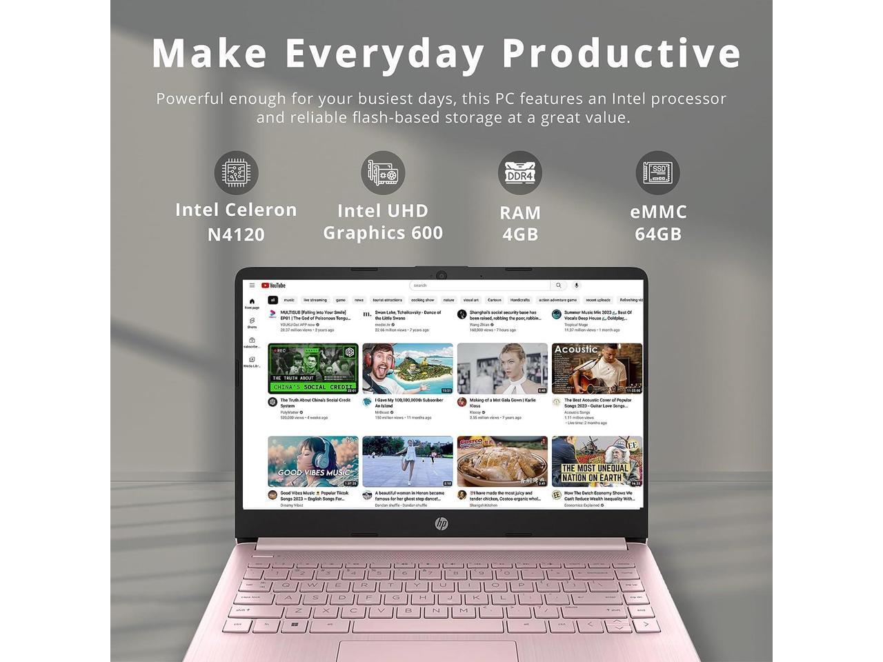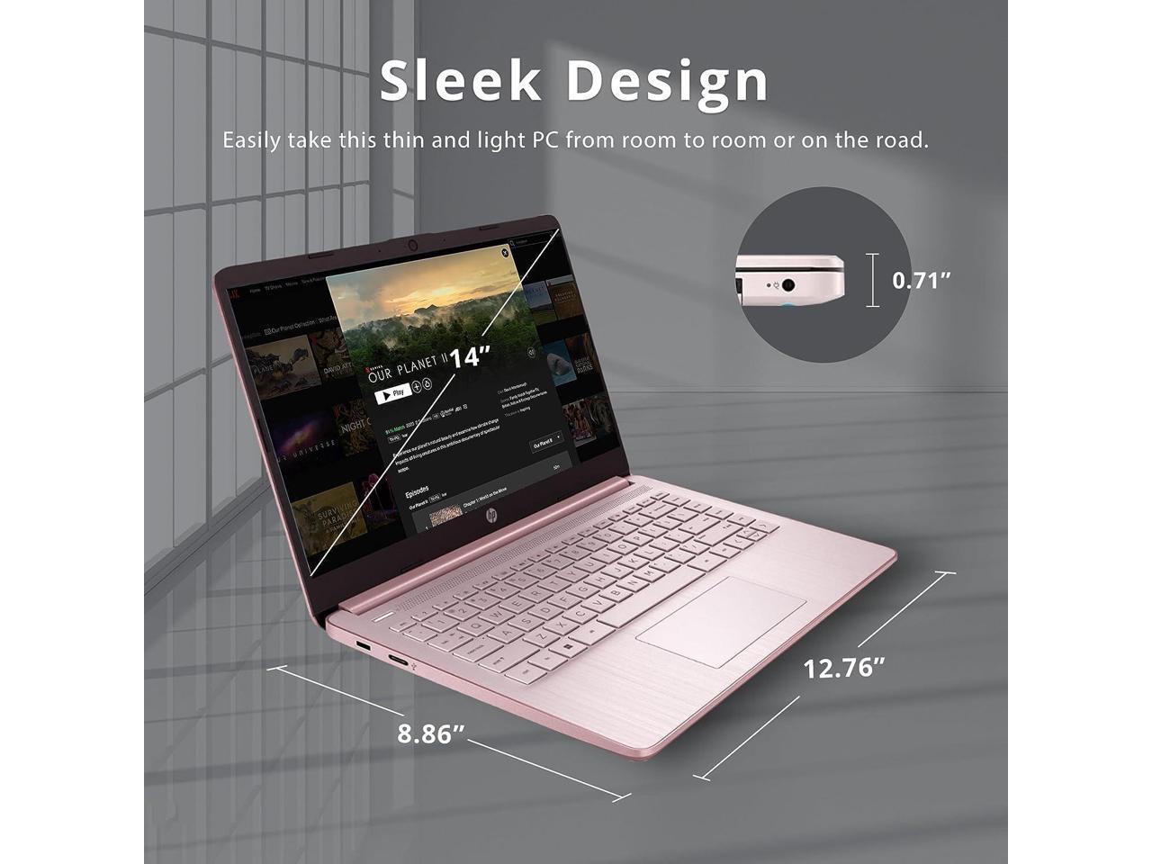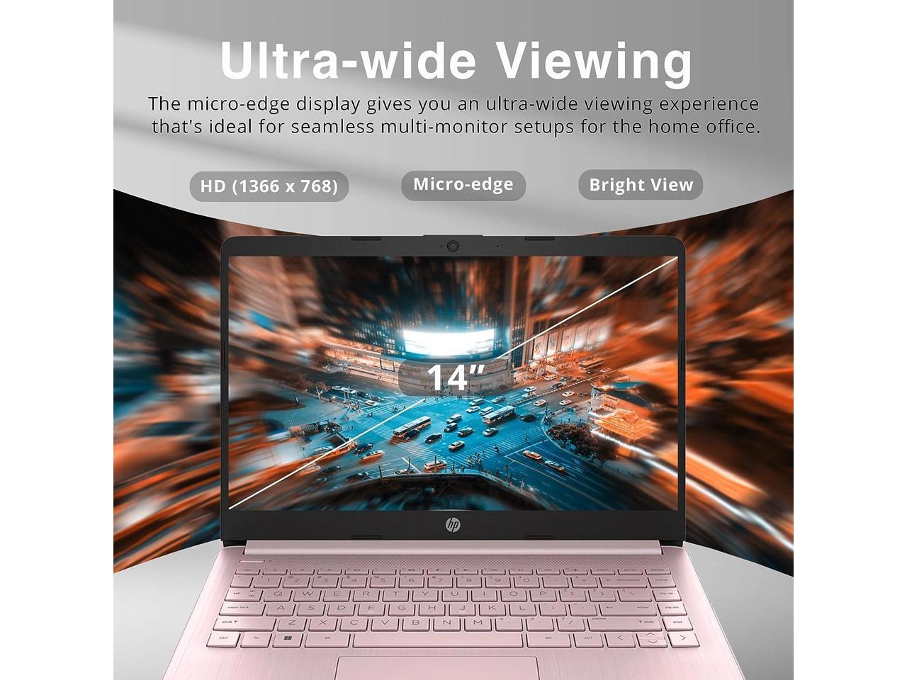 HP Premium Stream 14" HD BrightView Laptop, Intel Celeron N4120, 16GB RAM, 64GB eMMC Storage, UHD Graphics, HD Webcam, 1 Year Office 365, Bluetooth, WiFi, HDMI, Win 11s, Pink, 32GB Hotface USB Card