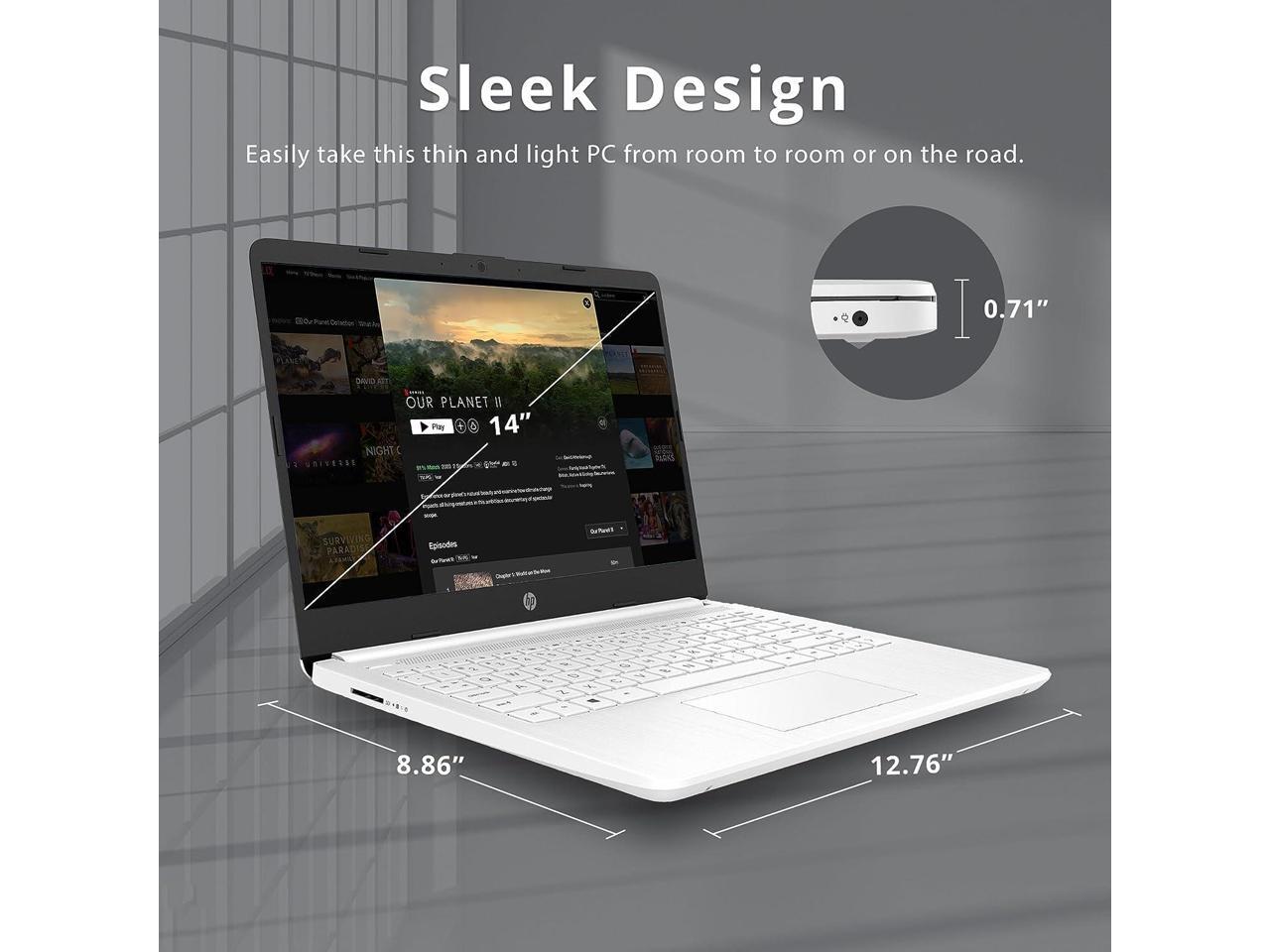 HP Stream 14" HD BrightView Laptop, Intel Celeron N4020 Processor, 4GB RAM, 64GB Storage, Intel HD Graphics, 720p Webcam, 1 Year Office 365, White, Win 11 S, 32GB Hotface USB Card