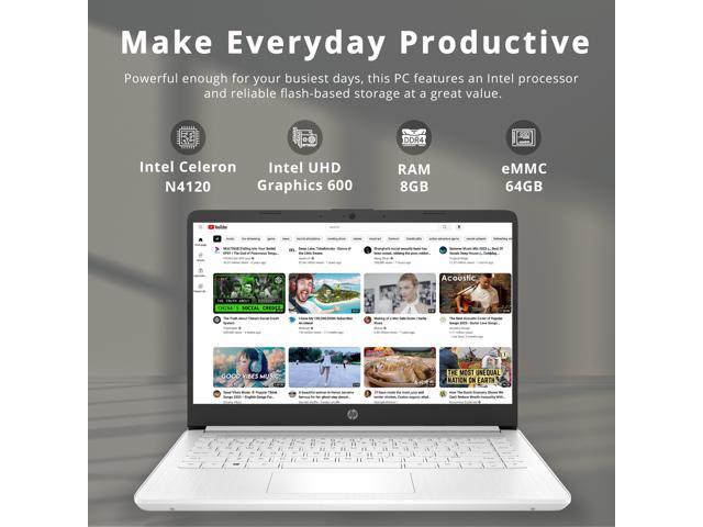 HP Premium 14" Stream HD Laptop, Intel Celeron N4120, 8GB RAM, 64GB eMMC, Webcam, UHD Graphics, WiFi, HDMI, 1 Year Office 365, Win 11s, White, 32GB Hotface USB Card