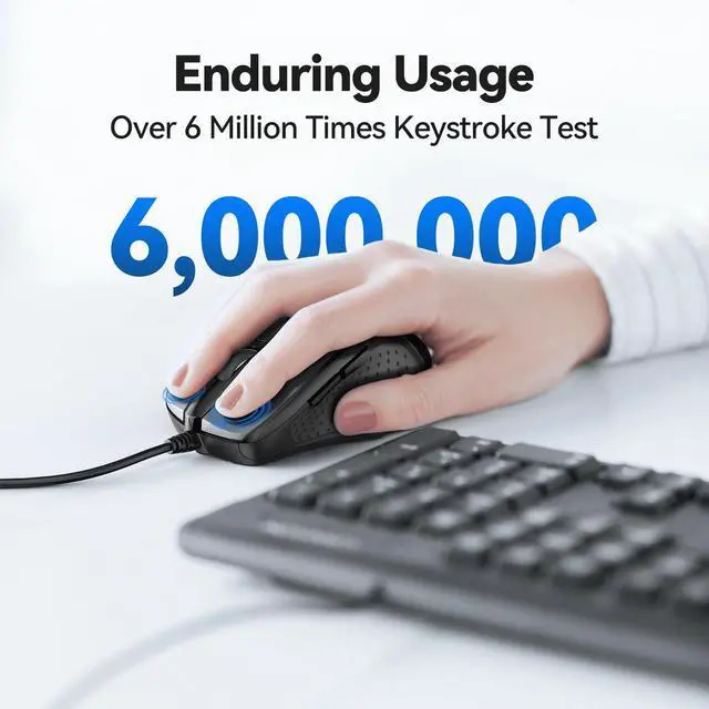 High Precision and Durability: TECKNET Tru-Wave technology wired computer mouse provides precise, intelligent cursor control and tracking on many surface types, even on smooth surfaces with glass. Tested for over 6 million keystrokes, the wired mouse ensures responsive clicks and a longer lifespan for daily use.
