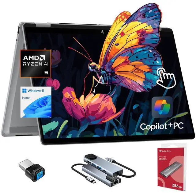 The future has arrived with HP OmniBook X Flip 16 Next Gen AI PC. Whether you want to be entertained or finish creative work, this AI-powered PC has the processor speed and performance to make it happen. Engineered with a dazzling 16" display and the ability to view it flat, folded, or flipped, you can enjoy vibrant, high-contrast colors in any angle that suits your mood. Designed with a backlit keyboard with large keycaps, your future PC is bright. Made from responsible materials like ocean-bound and post-consumer recycled plastic, and recycled metal to help drive progress toward a more sustainable future.