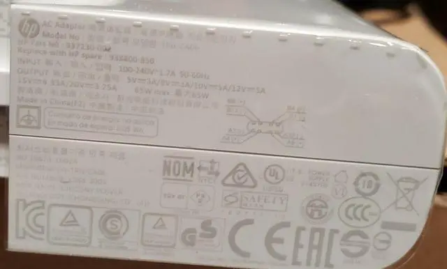 New Genuine 65W 937230-002 USB-C AC Adapter in White for HP Elite X2 1012 G2