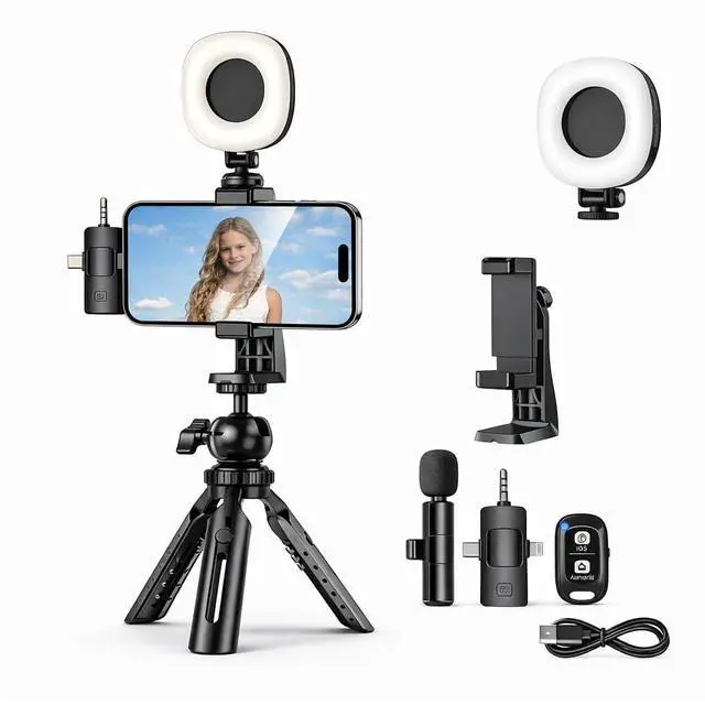 UBeesize Vlogging Kit for iPhone & Android, YouTube Starter Kit for Content Creators with LED Video Light, Microphone, Phone Clip, Adjustable Tripod for Vlogging, YouTube, Instagram, TikTok