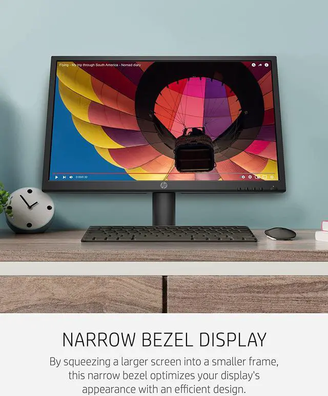 OverviewBrowse the web, stream your shows, and get some work done on the HP V223ve FHD Monitor that adjusts to your comfort needs and delivers stunning picture quality in highly affordable style. Anti-glareWhat's in the box? Monitor; HDMI cable; Warranty card; QSP; AC power cord