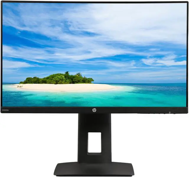 HP VH240A is a 23.8" IPS monitor that's ideal for both home and office use. It delivers Full HD brilliance, and striking visuals thanks to 1000:1 contrast ratio, 5 ms response time (GTG) and ultra-wide viewing angle. Integrated speakers produce loud, dynamic sound while eliminating the need for a pair of extra speakers. An HDMI and a VGA make it work with most PCs. An ergonomic stand supports tilt, swivel, pivot and height adjustment, and the virtually borderless design looks great on any desk.