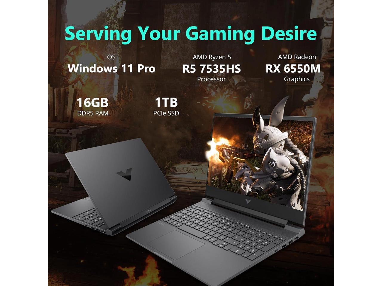 HP Victus 15.6" FHD 144Hz Gaming Laptop, AMD Ryzen 5-7535HS, 16GB DDR5 RAM, 1TB PCIe SSD, AMD Radeon RX 6550M, Backlit Keyboard, Windows 11 Pro, Mica Silver, 256GB Docking Station Set