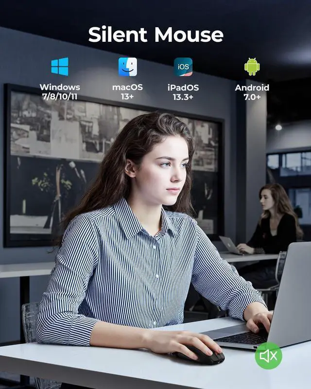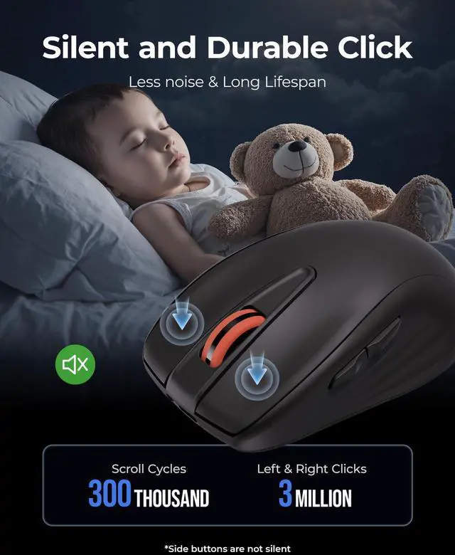 Quiet Mouse Enjoy seamless performance on various surfaces like wood, leather, fabric, paper, and resin. This usb mouse wireless features silent left, right, and scroll wheel buttons, enabling quiet, efficient work without disturbing others