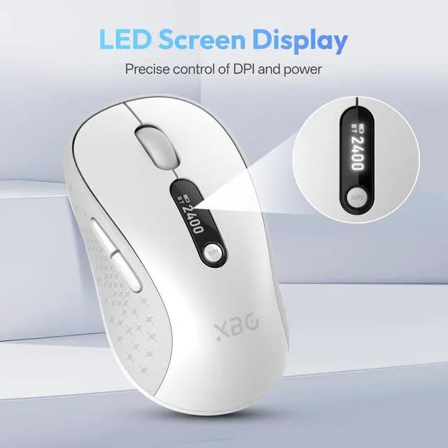 Smart Bluetooth Mouse with LED Status DisplayThe built-in LED screen shows real-time battery percentage, DPI level (800/1000/1200/1600/2400), and connection mode. Never guess your settings againcontrol is literally at your fingertips.