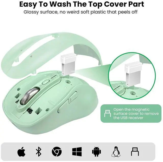1. This multi-device wireless mouse supports 2 Bluetooth (BT1/BT2) and 2.4G USB, allowing you to connect and switch between up to 3 devices effortlessly.