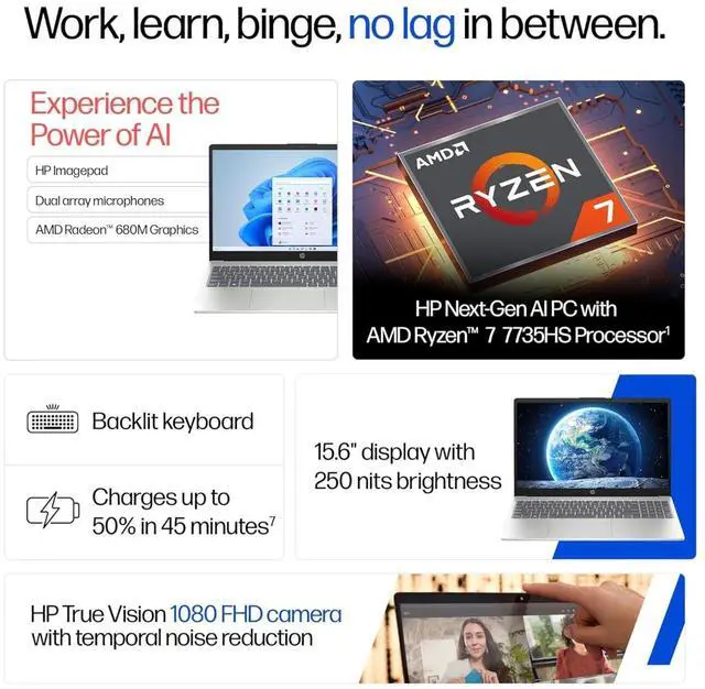 HP 15z 15.6" FHD Touch AMD Ryzen 7 7735HS 3.20 GHz 32GB 1TB SSD W11H Laptop, SL