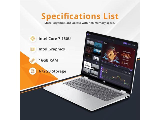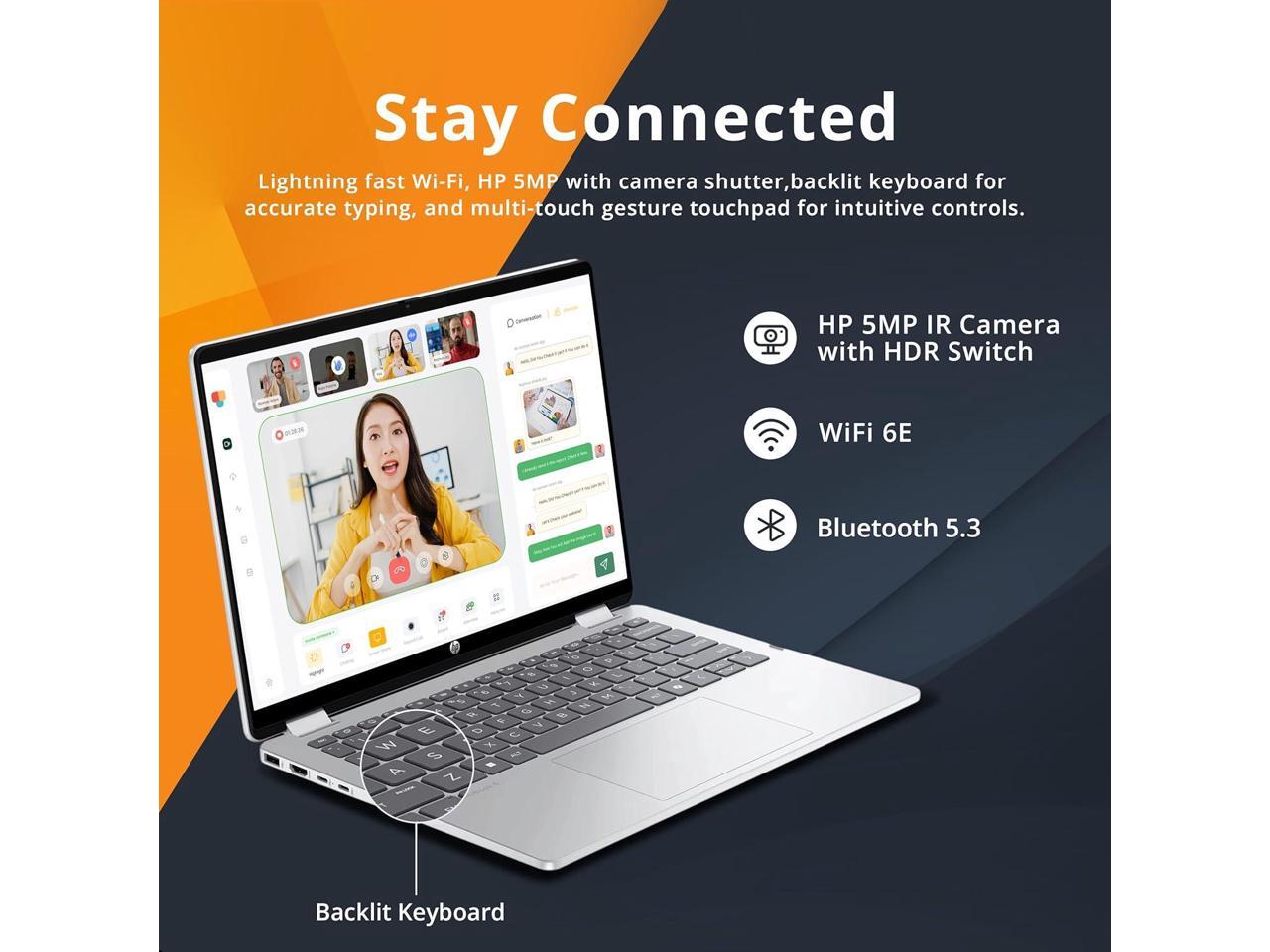 HP OmniBook 5 Flip 2-in-1 14" 2K Touchscreen Laptop, Intel 7 150U, 16GB LPDDR5, 672GB Storage(512GB SSD+160GB Docking Station Set), Intel Graphics, Backlit Keyboard, Wi-Fi 6E, Windows 11, Silver